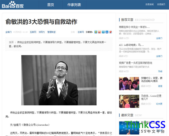 baidu百家 首页 列表页 文章页div css模板,扒百度百家网页模板,html模板席卷了百家首页、百家文章列表页,百度百家终极文章页。模板采用div+css构造,并JS殊效实现外围图切换。