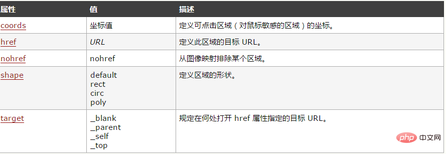 注释:<img>中的usemap属性可引用<map>中的id或name属性(由浏览器决定),所以我们需要同时向<map>添加id和name两个属性。