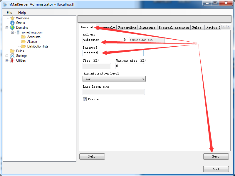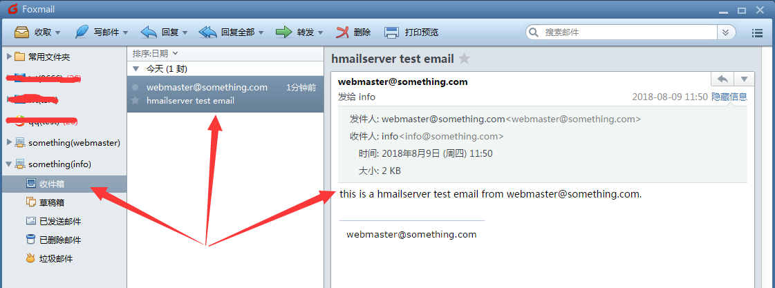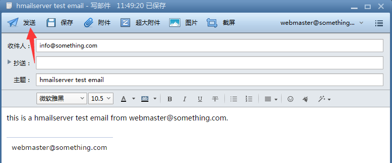 添加完成后我们使用webmaster@something.com向info@something.com发送一封邮件