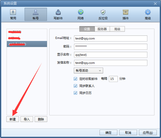 在出现的帐号管理界面点击左下角的“新建”,进行添加账号