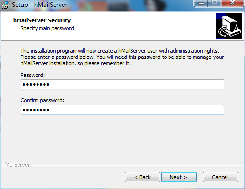 输入hMailServer管理员要设置成的密码