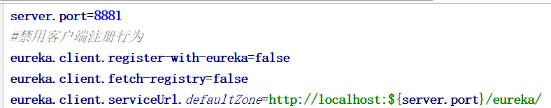 @EnableEurekaServer注解意思代表我们使用Eureka作为服务注册中心,默认情况它会把自己当作服务注册到注册中心,我们需要在配置文件禁用该功能