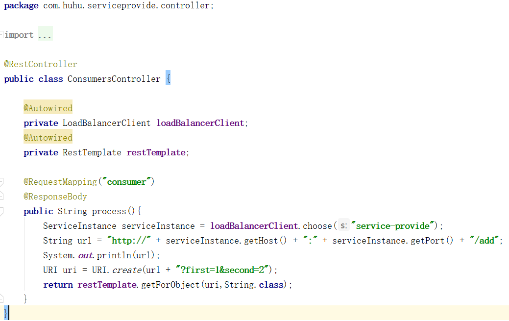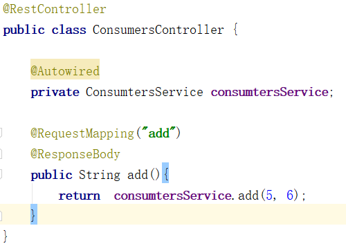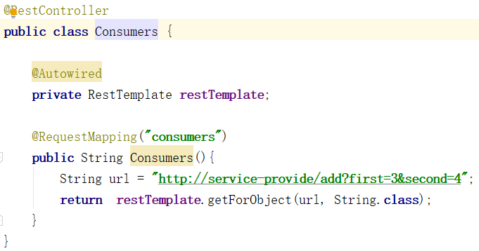 为什么这么写,这么用先不做介绍,后面的文章会分享为什么这么用,spring cloud做了什么。继续,现在把消费者换成Ribbon