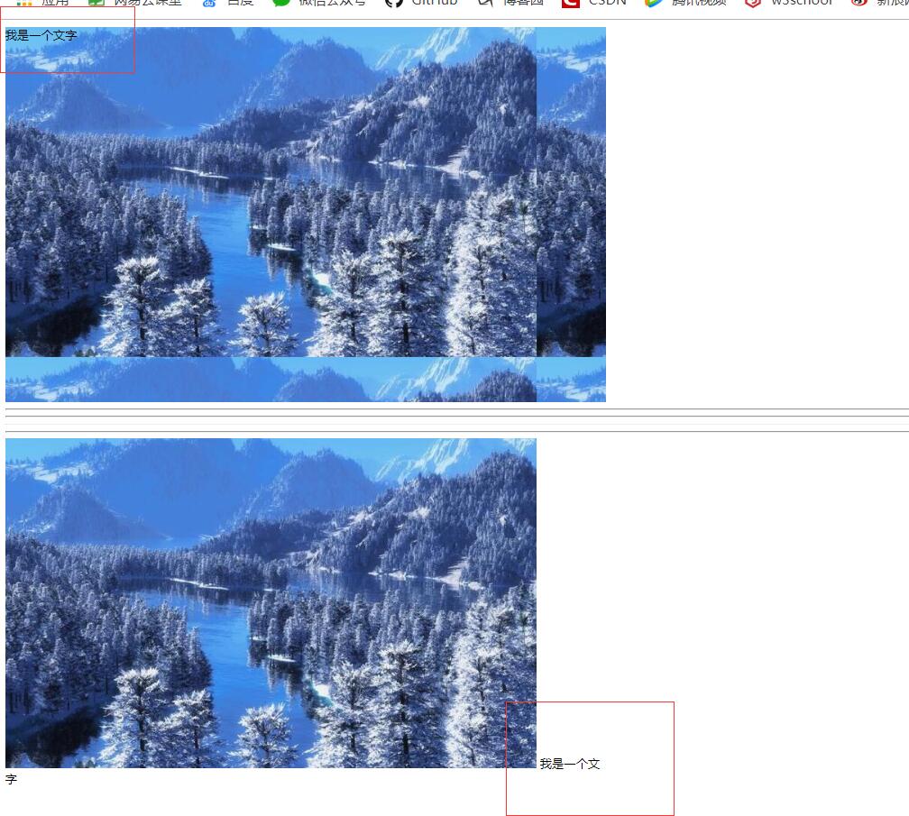 background:red url("image/snow.jpg") no-repeat fixed center center;/*背景颜色 图片地址 平铺方式 关联方式 定位方式*/