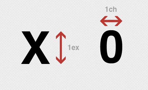 ch:以节点所使用字体中的“0”字符为基准,找不到时为0.5em;